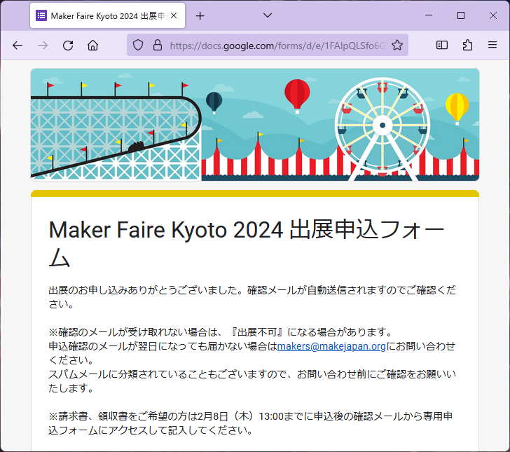 ☝出展申し込み完了画面(証拠画像)