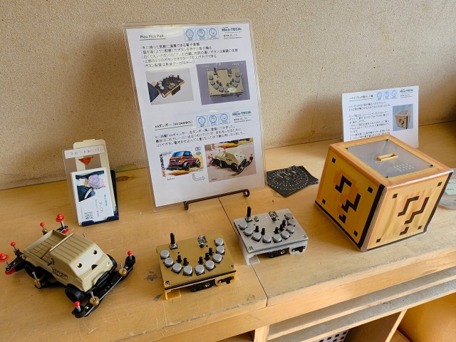 wiki.nicotech.jp私の展示物は、新作の電子楽器「Pico Pico Pad」、電飾ミニ四駆「K4ダンボー」、「ハテナブロック型カンパ箱」でした。