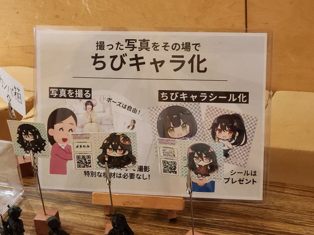 ☝私も写真撮ってもらってちびキャラになりました。なぜか髪が超ロングになっていますが(?)、服装の再現度は高いです。目つきが悪くて無表情なところはまさに私そのもの…