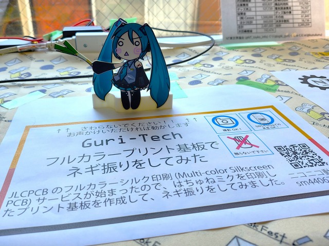 ☝Guri-Techさんのネギ振り。ネギを振るはちゅねさんの裏側に回路部品が実装されている。無駄が無い。フルカラーのプリント基板ってこんな綺麗に作れるんやという驚き。